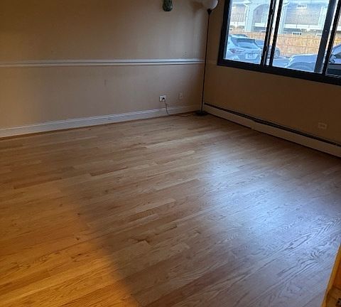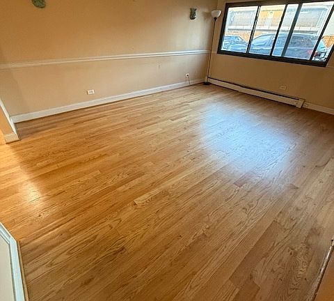 Updated 1 bed, 1 bath first-floor unit featuring a bright, open layout and hardwood floors throughout the main living areas. The kitchen offers table space and flows seamlessly into the living area, while the updated bathroom adds a modern touch. The spacious bedroom includes a large closet for ample storage. New window AC unit in 2023. One exterior parking space and a storage locker are included in the price. Residents enjoy a common laundry room in the building. Conveniently located near Golf Mill, I-294, Beck Lake Dog Park, Busse Woods, shopping, dining, and transportation.