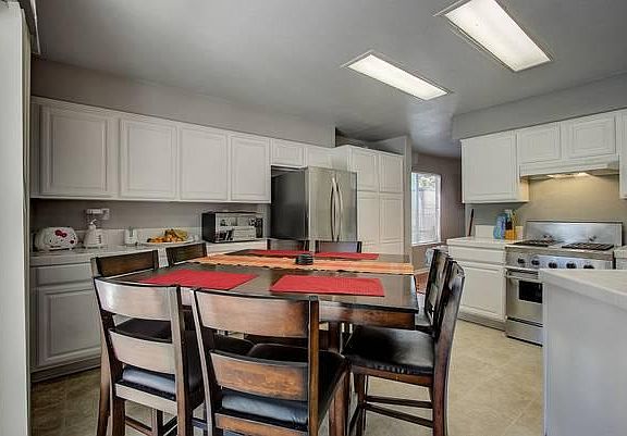 Gorgeous recently remolded home in a quiet, family friendly neighborhood. Beautiful unfurnished spacious 2-story, 6 bedroom, 3.5 bathrooms, single family property. The charming unfurnished interior features new carpet, paint and flooring, double pane windows, ceiling fans, high ceilings and a fireplace in the living room. The home has an open concept layout with natural light to enter. In addition, new appliances; stove, microwave and refrigerator. There are available hookups for washer and dryer. For climate control, the home has centralized air conditioning and forced- air heating. It's exterior features a spacious backyard to enjoy and relax during the hot summer nights while you BBQ. There is an attached 2-car garage, driveway parking, and on-street parking.