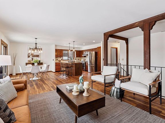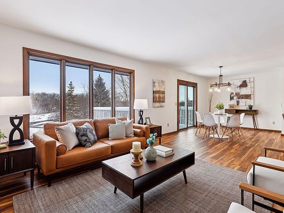 Fantastic home located in one of the most convenient neighborhoods in Bloomington. Several updates, including freshly painted interior and exterior, brand new carpet throughout and newer LVP flooring. Open concept main level features great natural lighting, fireplace, natural wood beams, and sliding door to deck. Kitchen has been refreshed with LVP, center island and stainless steel appliances. Two bedrooms up, including spacious primary with ensuite bath. Walkout lower level includes wood-burning fireplace, wet bar and two additional bedrooms. Home is perched on a gorgeous, fully-fenced lot overlooking mature trees. Fantastic location with amazing parks, trails and lakes – Collegeview Park, Tarnhill Park, Marsh Lake Park and more. Minutes to Southdale, Mall of America, airport, Bloomington Ice Garden and Hyland Hills.