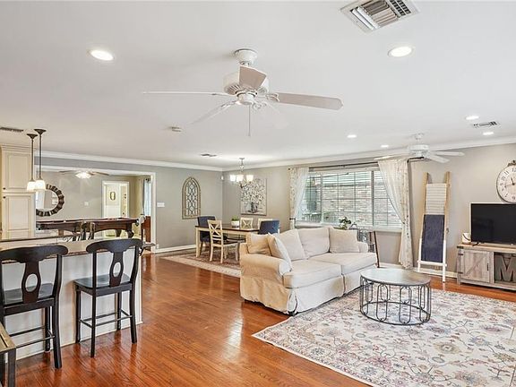 Beautiful home in the heart of River Ridge. A home to entertain in, relax in, be happy in. Four Bedrooms. Walk-in closets in each. Three tiled baths. Granite & S/S kitchen w/center island. Kitchen expands into great room w/dining & living areas. Comfortable family room is attached to large playroom. Front porch. Rear 13'x25' deck & fenced yard. Refinished original hardwood floors & travertine tile. Roof and gutters replaces after Ida. Large driveway. House has been raised. Home comes with a Brunswick pool table and a portable. Electric panel has had a generator hook up added and comes with a portable gas generator. Convenient location.