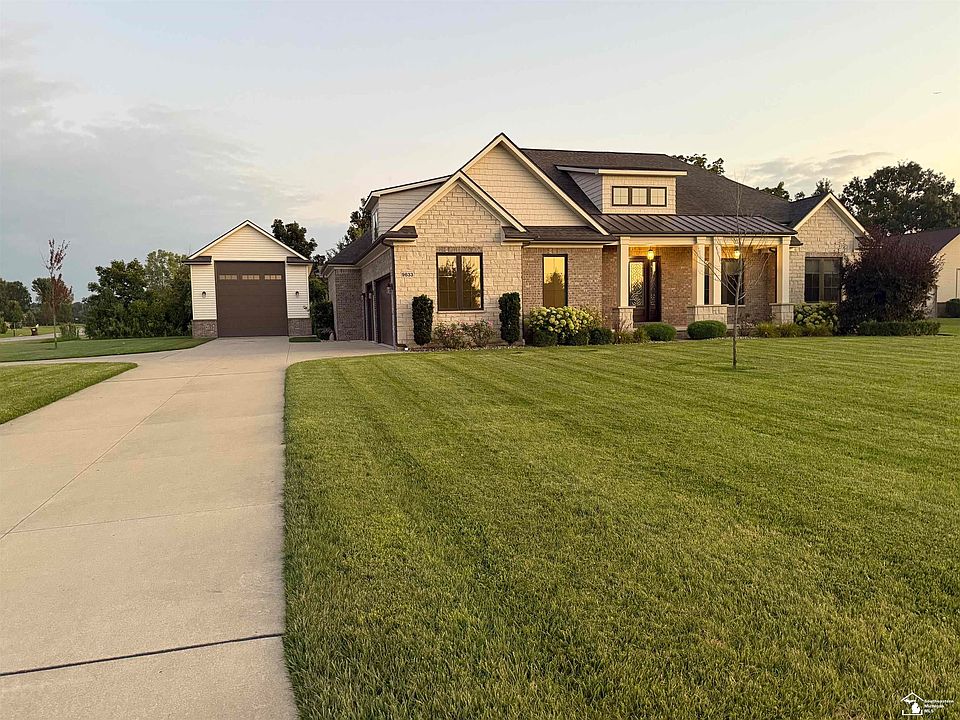 Custom 2614 square foot, 4 bedroom 2.5 bath home in desirable Lazy Oak subdivision. Main floor features open concept dining and great room with hickory floors throughout. Kitchen with walk-in-pantry, glass door wall leads to roof covered back patio. Main floor master with on suite as well as additional 2 bedrooms with additional full bath as well as half bath. Second floor includes bonus 4th bedroom. 3 car attached garage with 40x20 additional outbuilding.