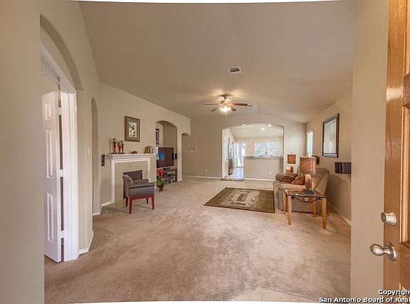 "WOW".. Meticulously kept one story .. An *Entertainers Dream* with terrific flow featuring open GRANITE Island kitchen w/breakfast bar, HUGE family room w/ FP, spacious luxury master, study, and tiled cov Patio (+ extension) overlooking gorgeous GOLF COURSE .. Check out the beautiful Mature Trees and tons of attic storage. .. Great schools, and convenient to EVERYTHING (Med Center, Sea World, Lackland AFB, upscale shopping, major corporate centers) .. Refrig, Washer, Dryer convey.