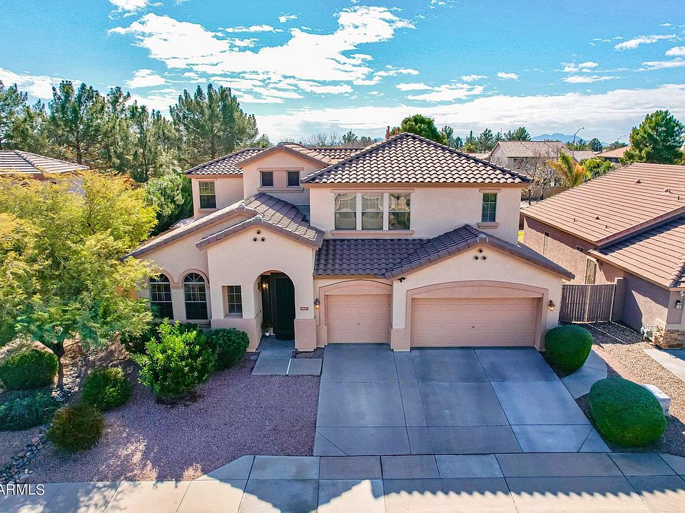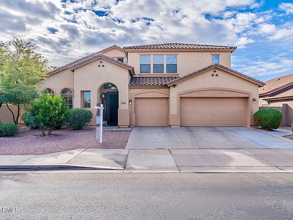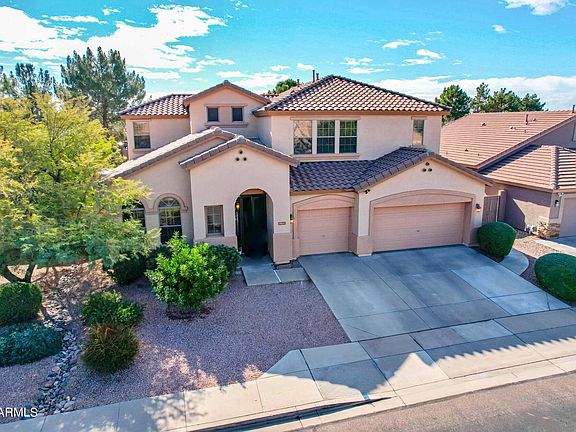Welcome to your dream home, located in the sought after Augusta Ranch community, home to Arizona's # 1 executive golf course! This meticulously maintained 2003 residence is a true gem, boasting 5 bedrooms and 4 bathrooms, with 2 of the bedrooms being luxurious dual masters, and 3 with walk-in closets. From the moment you step inside, you'll be greeted by the elegance of a custom iron screen door and accent window, vaulted ceilings, custom natural wood plantation shutters with daylight lighting all throughout, creating a spacious and airy atmosphere. The recent 2023 updates elevate this home to modern perfection, including brand new neutral interior paint, newly installed hot water heater, porcelain plank wood look tile, and upgraded padded carpet that adds a touch of splendor to every step. In this chef's kitchen, every detail has been carefully considered to create a space that is not just functional but also a visual delight. The culinary haven features ample 42" cabinetry with glass accents, earth tone backsplash, 12 dimmable canned lights, greige corian countertops, an island with storage, top-of-the-line matching GE appliances, dual ovens, an RO system, and filmed accent windows that add a touch of sophistication. The master bedroom is a retreat in itself, with a French door entryway, separate shower and tub, private toilet room, dual vanity with a makeup station, and a grand walk-in closet. Enjoy private access to an oversized balcony, perfect for those breathtaking AZ sunsets. The spacious 10ft high ceiling guest bedrooms feel like suites, connected via a Jack and Jill bathroom for privacy and convenience. Downstairs, discover a full bathroom with a matching iron screen door, just off an oversized bedroom, with private access to the backyard, where a beautiful oasis awaits. The grand covered patio extends the length of the home, featuring a fan and a gazebo with lights. Take in the serenity of the landscape, complete with natural grass, updated rock, lush shrubs, trees, and greenery. The three-car garage is a car enthusiast's dream, with well-maintained epoxy floors, floor-to-ceiling custom cabinetry, attached overhead storage, soft water loop, and a service door for easy outdoor access. This home is not just aesthetically pleasing but also equipped with modern conveniences. The HVAC system features two TRANE x R13 units, and the property is secured with a top-of-the-line camera and alarm system that alerts for any glass breakages. Enjoy the convenience of a SMART sprinkler system with phone notifications and a wifi-controlled Beehive system linked to water valves for efficient water management. Stay involved and experience the community clubhouse, bar&grill, Top Tracer driving range that allows players to track the distance, height, and ball speed along with all other events held by the neighborhood. Compete in team corn hole tournaments, family movie nights on a projected screen, glow in the dark soccer/ golf, and live music with outdoor seating and tables open to the public. There are 5+ parks within the community that include full volleyball, soccer, basketball courts and walking/ biking paths. Under a half hour from Saguaro Lake, Canyon Lake and the Salt River. Located less than 1.5 miles from Fry's, Albertsons, Bashas and 10 minutes from Safeway. Just minutes from shopping malls, 202 HWY, US 60, and so much more. This home is a must see - take a tour today to experience it's beauty for yourself!