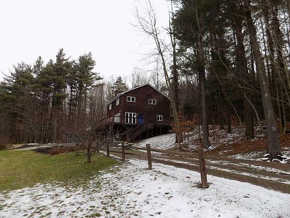 Country Paradise! This beautiful custom home is located on a quiet wooded lot with a spring feed pond. The home features 3 spacious bedrooms and 2 full bathrooms, and a finished basement that you can walk out on ground level. Plenty of windows allow for a bright airy interior. This home has hardwood floors, wall-to-wall carpets, and laminate and stone floors. There's a wraparound deck on three sides of the home with a walkout balcony on the 2nd floor. The wooded acreage has hardwood trees throughout. This home needs some TLC but must be seen to be appreciated. Don't let this one pass you by!