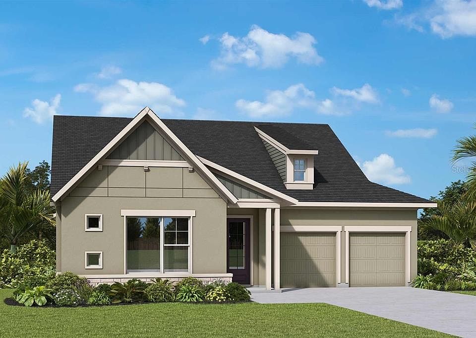 Under Construction. Welcome to Laureate Park, one of Lake Nona’s most sought-after communities offering cutting-edge design, walkable streets, and resort-style living. Residents enjoy exceptional amenities including a resort pool with cabanas, LP Fit fitness center, tennis and pickleball courts, parks, playgrounds, and miles of scenic trails. The vibrant Village Center features lakeside dining, cafés, and community events—all minutes from Medical City, USTA National Campus, and Orlando International Airport. Homes are crafted with modern architecture, energy-efficient construction, and front-porch charm that brings neighbors together. Experience the perfect balance of innovation, wellness, and community—live, work, and play in the heart of Lake Nona at Laureate Park. The open-concept family and dining spaces let your personal style shine in the abundant space and natural light. Open sight lines and an impressive layout make for greater culinary delight in the tasteful kitchen. Enjoy your leisure time in the cheerful sunroom and the delightful lanai. The Owner’s Retreat offers a deluxe en suite bath and an incredible walk-in closet. The guest suite features a private bathroom while each Jack-and-Jill bedroom provides a unique place for individual styles to flourish.
