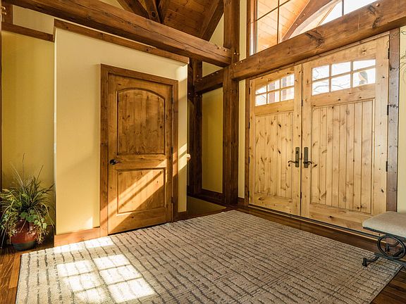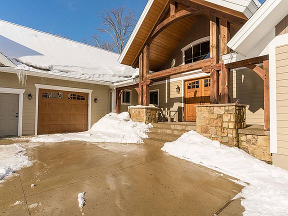 Welcome to this stunning, custom built home by HighPoint Homes and Blue Ox Timbers located on Stowe Lake. Nestled on a quiet, dead-end road with a large yard, this property offers the privacy you’ve been looking for. This home welcomes you with grand timber beams, an open layout, panoramic lake views and stone fireplace in the main area. The spacious primary bedroom features a fully loaded en suite. The lower level has a large family room, wet bar, 2 bedrooms, and 2 bathrooms. The large 3 stall attached garage with walk-up storage area that could be converted into additional office space, gym or game room area. The second building on property has been used as a large workshop with attached garage and bathroom - another area that has endless options for uses. Additional features are game cleaning room, dog washing station, custom stamped concrete compass in driveway, walk-in pantry, sunroom, amazing west facing sunsets, perennial gardens, great fishing off the dock and much more!