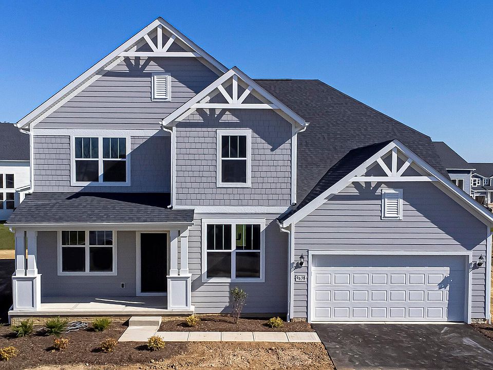 **OPEN HOUSE SAT 11/22 & SUN 11/23 12PM-4PM** This is a lovely new 4 bed 3.5 bath home in Homestead at Scotts Farm. The gourmet kitchen has built-in stainless gas appliances, dana white pure style cabinets, miami vena quartz counters, catch ice white matte tile backsplash, an upgraded black metallic composite sink with a sleek moen faucet, beautiful crosby pendant lighting, a large walk in corner pantry for storage and an island with space for seating. The owners suite has an awesome walk-in closet and a private bath with a double bowl white vanity, black pearl granite counter, a warm gray walk-in tile shower and an enclosed toilet area. An add'l 3 beds, one with a private bath, a hall bath with a double bowl vanity and blanco maple quartz counter, a large multi use loft and a laundry room with a convenient utility sink. An eating space, great room with a direct vent gas fireplace/upgraded white kenwood mantel and blanco white marble surround, a dining room, flex space with french doors, powder room, planning center, boot bench and a 2 car garage with room for a tandem 3rd car or extra storage space. A full 8' basement with egress windows and rough in plumbing. Black finishes and fixtures. Smart home features included. Upgraded soft beige luxury vinyl plank flooring throughout the main level. Beautiful white rail and wrought iron spindles. Relax on the full front porch with a good book and favorite beverage. Great location on an oversized corner lot, close to US-33 and SR-42, with quick access to I-270 and many everyday conveniences like groceries, banking, pharmacies, dining and more. This beautiful home is ready for your visit today.