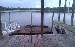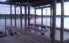 Beautiful property with an almost new covered dock with boat lift and floating dock. The property has an almost new bulkhead all the way across the river frontage. There is a deep well and septic system that will accept up to a 3500 square foot home. Build your dream home or remodel the existing two bedroom 1 bath home. The value is in the property. The house is in need of major repair or tear it down.