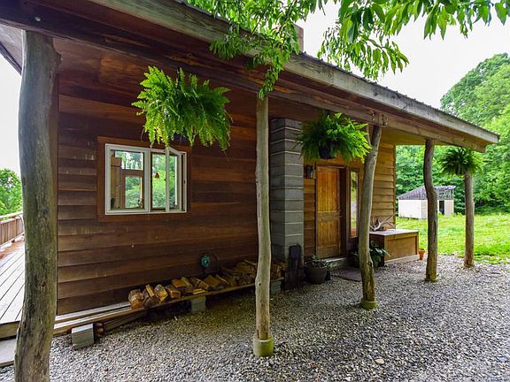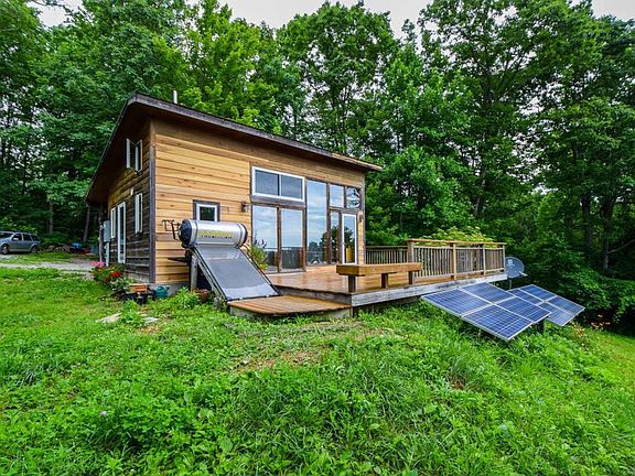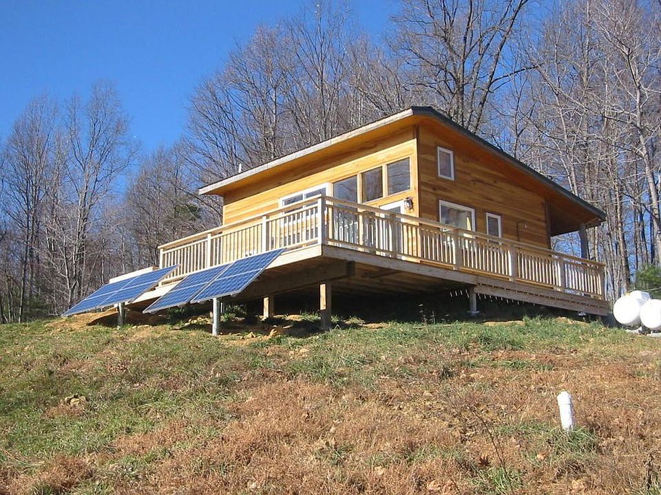 On the Frontier, 20 minutes from Kroger. 34 magnificent acres and a beautiful, sustainable cabin. Incredibly peaceful, scenic and convenient! The existing home is a perfect artist's cabin, or family getaway with long, mountain views, trails and 2 creeks on the property. Passive and active solar design with "grid tie system" wood stove, solar hot water heater with propane back up. Metal roof, 2x6 stud construction, high speed satellite internet, big, wrap around deck, 2 sheds (1 w/ electricity) plus 1 framed building. Septic for expansion to 3 bedroom, 2 bath home in place. If you have always dreamed of "going green" and the potential to live off the grid, this is your affordable opportunity. 5 min off of the Blue Ridge Parkway exit atop Bent Mountain, bear Copper Hill and Adney Gap. 3 outbuildings one with power as well.