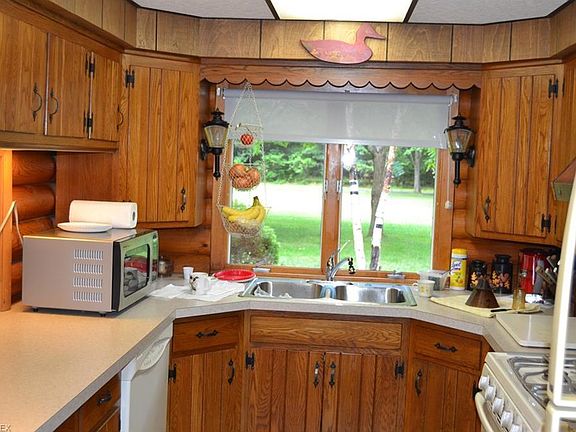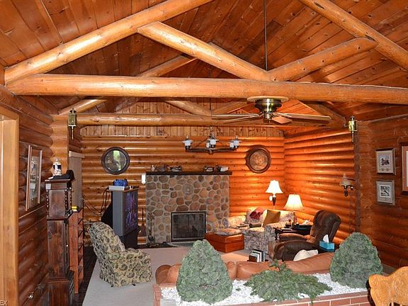 Authentic, one-owner log cabin features outstanding family room with vaulted ceiling showcasing log timbers with gas and/or woodburning fireplace which features stones from the Kinsman Creek. Enjoy the natural wildlife from your windows (turkey, deer, etc.) from the enclosed sun porch, which is accessbile from great room and garage. If you've ever wanted seclusion, this is the place for you. New roof in 2010, h2o tank in 2016, electric updated in 2015, newer roof in 2011, exterior paint and rainspouts 2015.
