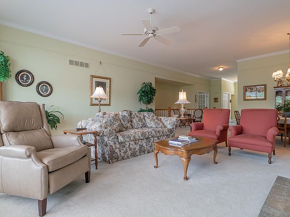 Beautifully maintained , maintenance free living with this 4 bedroom 3 bath ranch townhome located in Ellendale Farms subdivision in Crown Point. Home also features, dining room family room with gas fireplace and eat in kitchen that take you out onto a nice size deck to enjoy the pretty pond,scenic views with plenty of yard. Mostly finished walk out lower level with spacious great room, 3/4 bathroom,nice size bedroom and loads of storage.