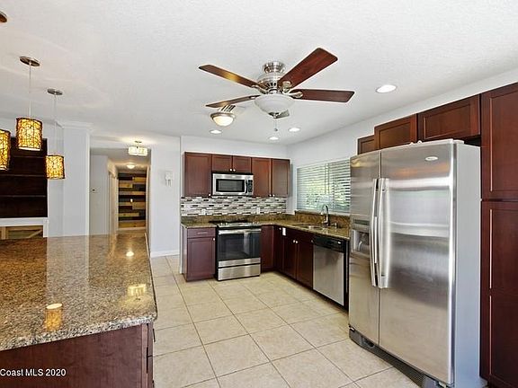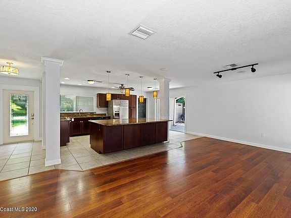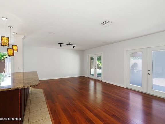 Come home to this open home with double french doors leading to a paradise backyard with putting green, saltwater pool, outside shower, hot tub and tropical preserve behind. This lovely home has large open kitchen, dining, and entertainment area with surround sound system. With maple wood floors, stainless steel appliances, granite counter tops, 3 bedrooms 2 full bath home is a perfect place to make your home in the heart of Cocoa Beach. Blocks to the beach with a lush park preserve behind you with pond, trails, and bird watching. This home has features lifetime roof, all impact windows, sprinkers, hurricane shutters, new insulation, pavers and solar attic fan. So much home it is a must see!