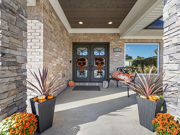 Luxury Living in Boone's Trace Gated Golf Course Community Discover this stunning custom design ranch home with a full finished walkout basement, ideally situated on a quiet cul-de-sac and backing to the fairway. Step inside to an open design where white oak engineered wide-plank flooring flows throughout the main living area. The great room impresses with coffered ceilings, a gas-log fireplace, built-in shelving, and a wall of windows that create a seamless indoor-outdoor connection. The gourmet kitchen is a chef's dream, featuring quartz countertops, a massive island with seating, designer tile backsplash, pot filler, gas range, double ovens, wine cooler, coffee bar, and a walk-in pantry. A mudroom adds everyday convenience. The split-bedroom layout offers a private primary retreat with direct access to the covered deck, a spa-like bath with a soaking tub and oversized tiled shower, quartz counters, and a custom walk-in closet. Two additional bedrooms share a stylish Jack & Jill bath, plus there's a half bath for guests. The covered back deck is truly the pinnacle of outdoor living, overlooking the golf course and perfect for entertaining or quiet evenings. The open staircase leads to a beautifully finished basement with luxury vinyl flooring, a second fireplace, family room, wet bar, fourth bedroom, full bath, and a golf cart garage. Walls of windows flood the space with natural light, and a walkout patio extends your living outdoors. Additional highlights include an oversized two-car garage and a carpet-free interior for easy maintenance and timeless style.