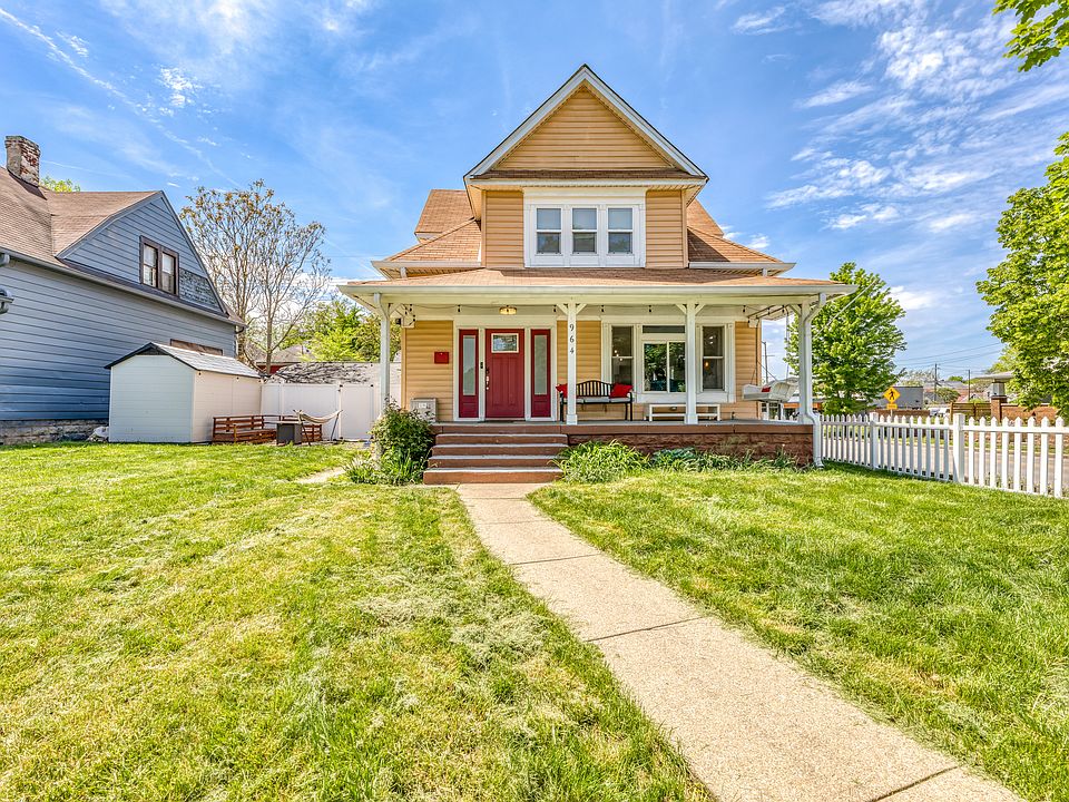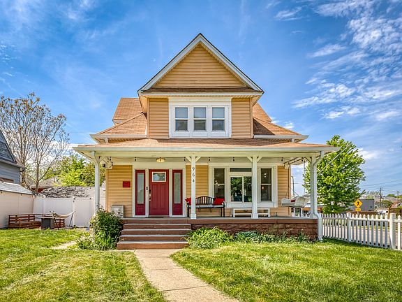 Welcome to this stunning 3-bedroom, 1.5-bath home that perfectly blends timeless character with modern conveniences. The interior boasts beautiful, laminate floors that flow into a well-appointed kitchen. You'll love the granite countertops and full suite of stainless steel appliances. The dining room is an entertainer's dream, featuring an oversized wet bar complete with a beverage refrigerator. The home's functional and spacious layout includes generous room sizes and ample closet space. Key systems include a 200-amp electrical panel, central A/C, and insulated walls for comfort and efficiency. Enjoy outdoor living on the huge front porch, enclosed by a charming vinyl picket fence. The dry basement offers plenty of room for storage. This is a truly functional home with lots of character! Parking is either out-front or through the alley there is a concrete driveway.