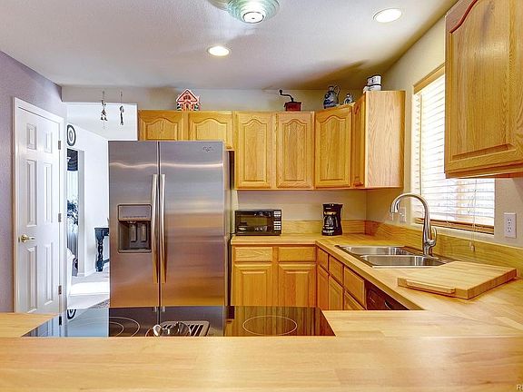 Welcome home to this beautiful 4 bedroom, 4 bath home with fully finished basement! Upon walking into the foyer the vaulted ceilings soar with an abundance of light! Original owners have taken great care of this treed lot that has a perfect entertaining space out back with a large tiered deck and hot tub. New stainless steel appliances in the kitchen along with butcher block counter tops. Upstairs, the double door entry into the master suite has been updated with a lg walk in closet and spa like master bath. Over sized shower w/pebble stone floor & floor to ceiling tile. There are 2 additional bedrooms upstairs w/an additional full bath. The garden level basement is complete with a lg. rec room, bedroom and full bath. Just minutes from the Bear Dance Golf Course & easy access to I-25! Don't wait, see this home today!