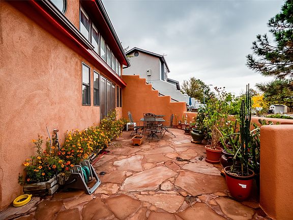 Tucked away in a peaceful North Mesa neighborhood, this one-of-a-kind multi-level home offers a perfect blend of character, functionality, and inviting outdoor living spaces. The large front yard leading to a stone patio—a great spot to work on your green thumb. Enter into the front entrance with tile flooring that leads into the main living area. The bright and open living room features soaring vaulted ceilings and a wall of floor-to-ceiling windows that fill the space with natural light. A cozy wood-burning stove sits perfectly between the living and dining areas, creating a warm and inviting atmosphere. The kitchen is both stylish and practical, featuring a peninsula bar, rich wood cabinetry, stainless steel appliances, and abundant built-in cabinets and pantry storage. Also on this floor is a powder room and access to the two-car garage. Upstairs, the second floor showcases beautiful wood flooring throughout. Two comfortable guest bedrooms share a full bathroom with tile flooring and a tiled shower/tub surround. Also on this level is a spacious guest en-suite with access to the back deck that includes its own bathroom with a walk-in tiled shower with glass doors, a long single sink vanity. A laundry closet is conveniently located inside the suite for added ease. The third floor offers flexible living with an additional guest bedroom that makes a perfect office or studio space and includes direct access to the backyard deck. The spacious primary suite feels like a private retreat, complete with a wood-burning stove, treetop views, and two closets—one being a generous walk-in. The en-suite bathroom features tile throughout, a double sink vanity, and a luxurious walk-in double-headed tiled shower. Entertainers backyard with a multi-tiered composite deck surrounded by mature trees and shrubs for privacy. Enjoy relaxing evenings in the included hot tub or host gatherings under the stars in this serene outdoor setting. Experience this truly unique home for yourself!