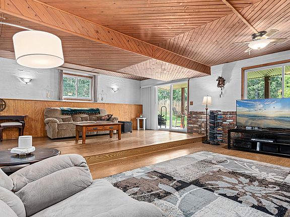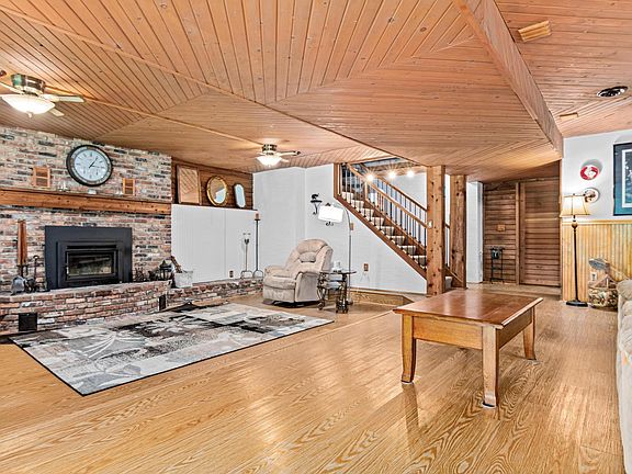 Welcome to a home that effortlessly blends everyday comfort with unforgettable entertaining. Situated on a 1.7-acre lot, this property offers timeless charm with modern surprises throughout. Step inside to find a spacious walk-out lower level featuring a wood-burning fireplace, a fourth bedroom, and a hidden bar/spa room tucked behind a bookshelf door—your own private retreat. The spa area includes a shallow jetted soaking tub, ideal for unwinding after a long day. Upstairs, the main level features three bright bedrooms, all with windows that frame views of mature trees and natural surroundings. A traditional dining room flows seamlessly into the kitchen, with glass French doors leading out to an expansive 50+ foot wraparound deck—perfect for relaxing or entertaining while overlooking the peaceful backyard, fire pit, and regular visits from deer and wildlife. Additional features include: patio with lower-level access, ample parking for RVs and/or multiple vehicles, new furnace and AC installed in 2024, flexible spaces for work, play, and guests. This is more than just a home—it’s a lifestyle. Don't miss your chance to own this great property!