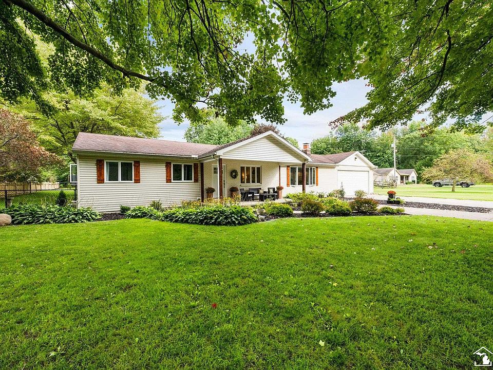 5-acre Ranch Home in a serene countryside setting in Bedford! Property boasts a 24x36 Horse Barn, newly fenced .55-acre pasture, and additional 20x28 Pole Barn w/10’ garage door, high ceiling, 220-amp and loft for storage. The interior features have many quality updates adding a touch of modern elegance to the home: 2016 New open concept Living Room and Kitchen w/granite counter tops, new appliances, reverse osmosis, pantry room and laminate floors, complete remodel of main bathroom, and carpeting in bedrooms. Large Primary Bedroom has option to be Family/Rec Room. New Water softener and all interior doors, light fixtures and outlets replaced. Outside, the property truly shines with its equestrian amenities of the pasture and trails. The horse barn provides a safe and comfortable shelter, complete with 2-stalls and tack room. The sprawling pasture offers ample room for horses to roam and graze, ensuring they have plenty of exercise and fresh air. Overall, this 5-acre ranch home with its horse barn, pasture, fenced yard, and garage offers a unique opportunity to embrace a country lifestyle while enjoying the comforts of a modern and updated living space.