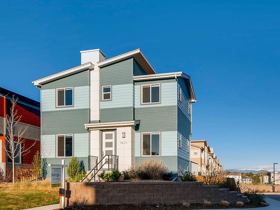 Unbeatable corner lot with gorgeous mountain views and walkout basement. Expansive open, main-floor master floor plan with engineered wood floors, features a main level master with skylights in bathroom and two-way rainfall shower. Dreamy kitchen has large eat-in exotic granite island, solid maple cabinets, engineered stone countertops and stainless appliances. Trex deck is hard plumbed with gas for grill and stunning views. Upstairs features 2 additional bedrooms, large loft with surround sound speakers and views of entire front range. Large, unfinished, walkout basement awaiting your vision. Washer and dryer included. On-demand hot water, high efficiency furnace and many other energy-saving construction solutions. No neighbors on one side! Conveniently located across the street from many restaurants, grocery stores, retail, churches and Valor High. "Spaces" offers the best contemporary single family, low maintenance living in Highlands Ranch. Showings start 4/21/2017 please call Chris Grund at 303-815-2505 with any questions or to schedule a showing.
