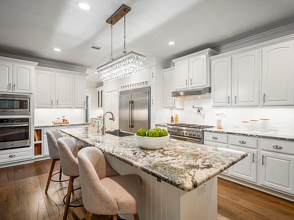 Towering treesSplit floor planExpansive backyardCul-de-sac lotCovered deckColossal islandGourmet kitchen