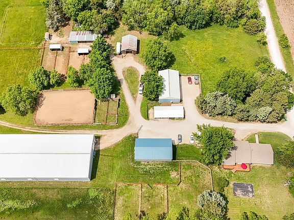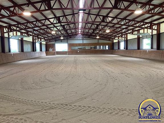 Beautiful opportunity! Excellent 27 acres located north of Meriden KS with everything you need for horses and livestock. 2000+ sq ft ranch home w 5 bedrooms, 2 full bath & half bath provides plenty of room for the family. Walk into the main living area with large windows for lots of light. The primary bedroom suite has a sliding door out to the back porch perfect for watching family, friends and your four legged friends enjoy the peaceful country acreage. There is also another bedroom currently used as on office next to the primary suite. From the living room step down into the large kitchen with an island and breakfast area. 3 bedrooms have fresh paint and newly refinished hardwood floors! Then step outside where you have the choice of two large outbuildings both with HVAC, plumbing, cement floors, insulated and ready for however you choose to use them. The newer outbuilding offers heated floors, laundry, a full kitchen & full bathroom! Then cross over to your 70x160 steel span indoor riding arena with viewing area that makes every horse owner happy. There are 6 huge windows for ventilation. The shed row barn has 5 stalls. 4 steel pipe dry lot paddocks w run-in sheds & auto waterers. Two ponds and large hay field finish out this one of a kind property. If 27 acres is not enough another adjacent 33 acres is available to the north.