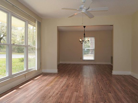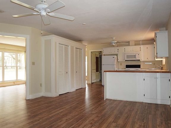 Tucked away on 2.48 acres with a sprawling front lawn reveals a 3B/2b, 1,674sq ft home. The 3rd bedroom was being used as a home office but with a little effort, it can be put back as a bedroom. Just look at the large windows that allow the outside in. There is even a wooded block countertop and a mixing/blender appliance build into the counter top ready to do some serious cooking. Look at those oak trees, you can't make those in a couple of years!