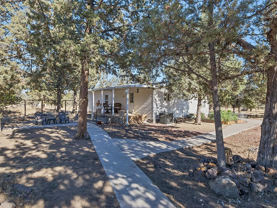 Wonderful opportunity to own a piece of West Powell Butte. Home sits on on almost 10 flat peaceful fully fenced acres. Directly across the road is 80 acres of BLM land. Private yet close to Facebook, Bend, Prineville and the Redmond airport. Would be excellent horse property. Home is spacious and lives bigger than the square footage would indicate. Nice 28 x 24 pole barn with attached 12 x24 covered area that is enclosed on 3 sides. New owner could build their dream while living in existing home. NW corner of property could have views of Cascades from a second story.