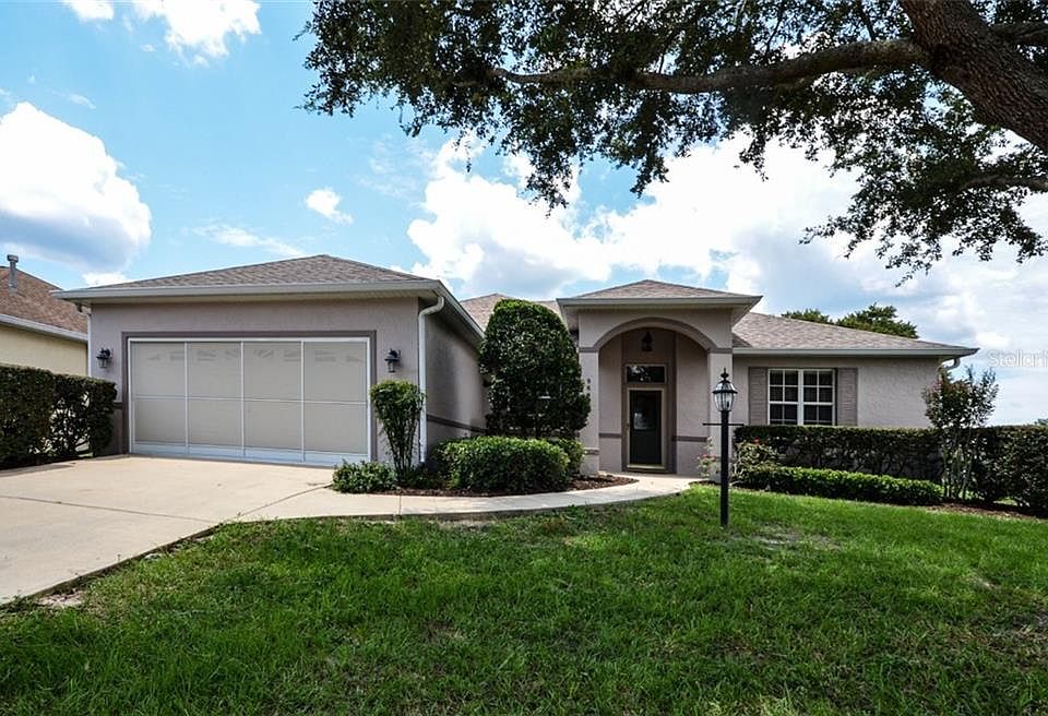 PREMIUM LOT GOLF COURSE HOME. This Jamestown model home is located in the much sought after gated 55+ community of On Top of the World. Home features 2 bedrooms, 2 baths, 2-car garage, family room with pocket doors, huge screened lanai that extends under birdcage, lanai is plumbed for a natural gas grill, lanai has an electrical outlet for a hot tub, split bedroom floor plan, brand new roof (July 2020), 9'4" ceilings throughout, neutral paint, neutral tile flooring in main living areas, neutral carpet in bedrooms and family room, living room is plumbed for a natural gas fireplace, laundry room, overhead storage racks in garage, garage is plumbed for a utility sink, and much more! Lawn care, basic cable, gym, exercise classes, 24-hour guarded gate, exterior painting, and more are included in your monthly amenities fee. On entry, a formal dining area is to your left and formal living room forward. A spacious kitchen left of the living room features oak cabinets, smudge-proof stainless appliances, Corian counters, and eat-at bar height counter that overlooks the breakfast nook. Double pocket doors open to the family room just off the kitchen/breakfast room. The Master Bedroom Suite is located on the right side of the home. Master Bedroom Suite features a large walk-in closet, a spacious Master Bath with HUGE step-in shower, and 2 oak vanities. The split bedroom floor plan has the Guest Bedroom and Guest Bath located down a quiet hall on the left side of the home - very private when hosting guests. The HUGE screened Lanai in the back of the home is accessed from 3 different rooms - the living room, master bedroom, and kitchen.