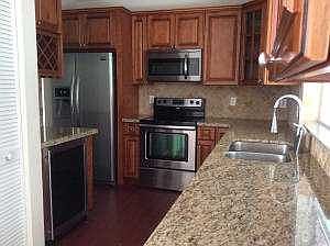 Remodeled, cherry wood cabinets. granite counters, stainless appliances, wine cooler, new baths, wood laminate flooring. Screened porch with paddle fan and mexican tile overlooks private back yard. WILL NOT LAST!