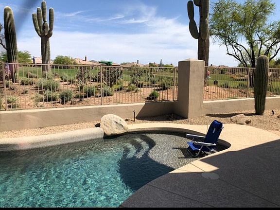 LONG TERM RENTAL LOCATED ON THE 8TH GREEN OF THE LEGEND TRAIL GOLF COURSE, THIS HOME IS FULL OF UPGRADES, PRIVATE POOL, OUTDOOR FIREPLACE THATS PERFECT FOR ENTERTAINING. Situated on the 8th hole of the Legend Trail Golf Course, this home is extremely quiet and private with golf course view. The Great Room floor plan has two bedrooms and an upgraded kitchen to delight the chef with stainless appliances, and upgraded gas range, granite counters, large pantry and breakfast bar. Enjoy all the wonderful amenities of Legend Trail's golf course and Cantina, Community Center with heated pools/spa, tennis, pickle ball and fitness rooms (within walking distance of home) as well as loads of hiking and biking trail in and surrounding the area. This home is fully furnished. Tenant responsible for utilities/cable/internet. Please contact for availability prior to filling out an application. Subletting is not allowed and will terminate lease. Please feel free to text, call or email with any questions.
