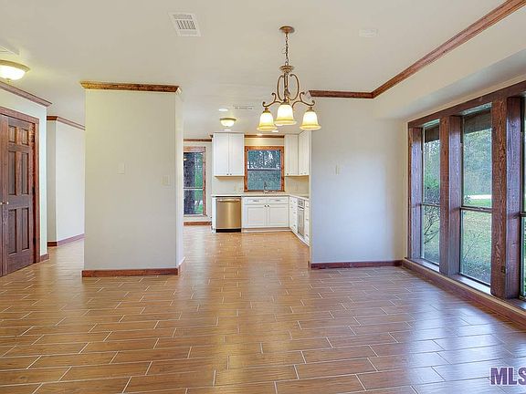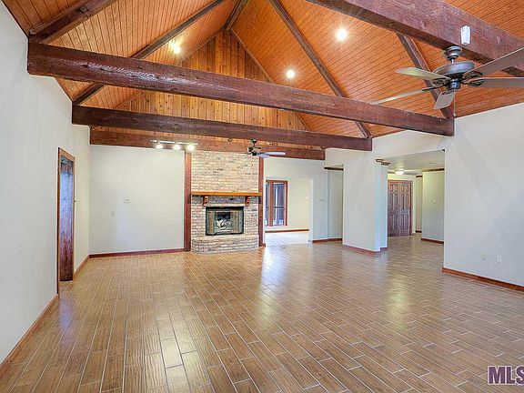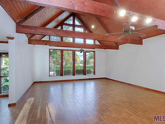Chalet living on 1+ acre, corner lot nestled among mature Louisiana foliage! This 3 bedroom 2 ½ bath remodeled home offers a great open floor plan for entertaining. The 27' x 21.5' den is adorned w/ 22' vaulted ceiling, exposed beams, a large bank of windows, wood style ceramic tile, & a gas fireplace. Plan to prepare your favorite meals in a kitchen w/ granite counters, stainless appliances, wall oven, electric stove, PLUS a large walk in pantry. Look to retire to a master suite featuring a fireplace, a master bath w/ granite, dual sink vanity, custom shower, & spacious walk in closet. Note the sun room overlooking a raised deck, covered brick paved patio, & pond. Finished storage room great for hobby room or office. Plenty parking even enough for a RV! Flooded in 2016 NOW like NEW!