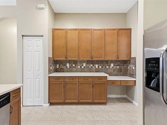 One or more photo(s) has been virtually staged. Spacious one-story home featuring 5 bedrooms and 3.5 bathrooms with a 2-car garage and a curved driveway offering plenty of parking. The inviting interior includes a bright dining area with a charming bay window, a stylish kitchen with a decorative backsplash and breakfast bar, and a comfortable layout ideal for both relaxing and entertaining. The primary suite offers a double vanity and a serene retreat, while the backyard boasts a screened-in lanai with a private pool—perfect for enjoying the Florida sunshine in privacy and comfort.