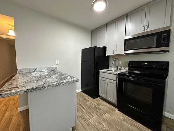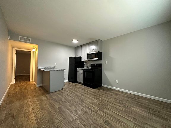This one bedroom/1 Bath unit has been fully upgraded and remodeled. The kitchen is equipped with shaker style cabinets, granite counter tops, stainless steel appliances including refrigerator, range, and microwave. Tile plank floors throughout the entire unit, blinds & ceiling fans. Energy efficient AC unit and double pane windows so very energy efficient apartment. Coin op community laundry on site. Owner pays water sewer and trash. Tenant pays electric.