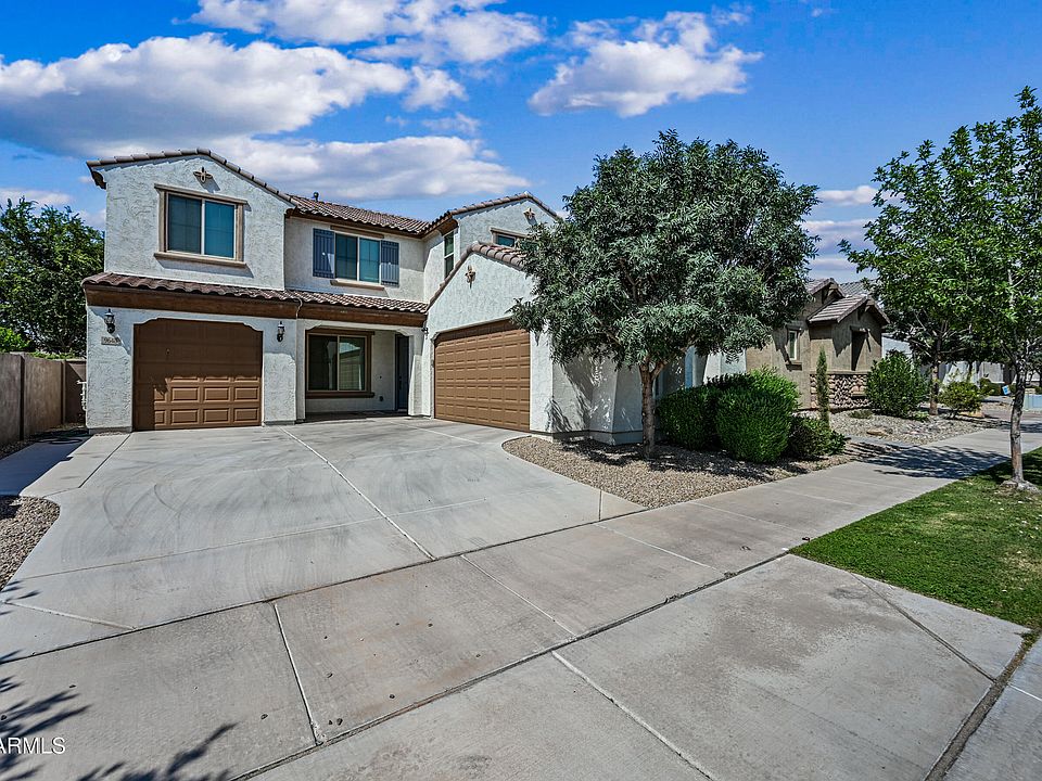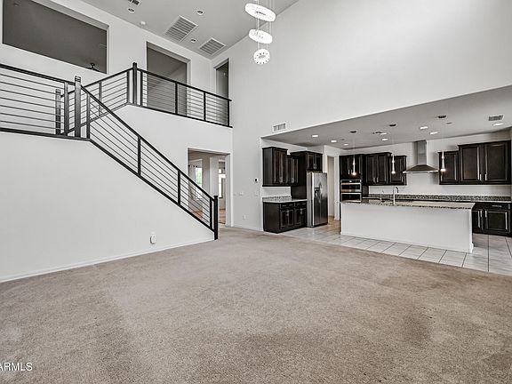 Highly upgraded 4 bed 3.5 bath home in the desirable East Mesa community of Cadence! Spacious, open floor plan offers formal dining room w/ direct access to gourmet kitchen w/ high end SS appliances, XL walk-in pantry & large island. Adjacent to the kitchen is a smaller dining space & perfect side room w/ built-in desk. Family room w/ high ceilings looks out to the beautiful backyard & covered patio.Also downstairs find a den & 1 bedroom w/ private bath, a 1/2 guest bath & laundry w/ washer/dryer. The grand staircase takes you up to a large loft space, 2 other generous size bedrooms & full bath. Master suite offers ensuite bath w/ tiled walk in shower, dual vanities and walk-in closet. Nothing spared in this lovely home! 3 garage spaces PLUS BONUS EV charger! Low maintenance backyard w/ / turf. AMAZING community center! Do not miss this one! Tour today & make it yours!