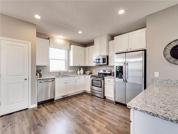 New Construction end unit walkout! This home includes finished LL rec room, and half bath. Open concept main level w study/flex room, large family room, kitchen, dinette and deck. 9' ceilings on main! Alpine White Echelon cabinets, granite countertops, Stainless Steel Appliances, vented out kitchen micro, wood laminate and upgraded carpet. Gorgeous site with looped trail and instant access to I-94. Ready to move in now. Quick close possible!