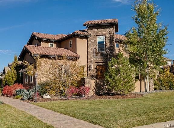 Stunning Tuscan style 2-story & former Parade of Homes model in highly desirable Heritage Hills, a gated community in Lone Tree. Designed inside & out with all of the classic and modern elements that are reminiscent of an italian villa. Outstanding curb appeal w/terra cotta tile roof, beautiful elongated arches and impressive stone & stucco. Charming courtyard w/stone fireplace, pave stone and wrought iron gate. The interior is rustic yet sophisticated with warm natural earth tones, loads of stone, wrought iron and dark woods. Unique round foyer set in stone rotunda. Incredible kitchen w/huge center island, slab granite, decorative hood, built-in refrigerator & commercial grade 6 burner stove. Study with modern french doors, rich paneling, & custom built-ins. Master bedroom features marble tile fireplace and gorgeous 5 piece bath. All bedrooms have private baths. The backyard features a pave stone patio with built-in barbecue and pergola. Large yard for neighborhood! Mint condition!