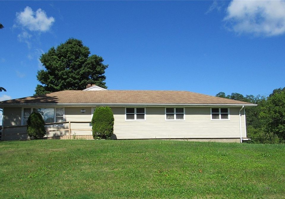 This sprawling ranch offers 5 bedrooms plus a bonue room and enclosed porch. The living room and eat-in kitchen are HUGE! The two full baths were updated in 2019. Quartz counters were also installed in 2019. The hot water tank is 5-10 years old. The seller currently uses a wood burner for the primary heat but originally it was heated with a boiler system with oil as the heat source. Frontage on two roads.