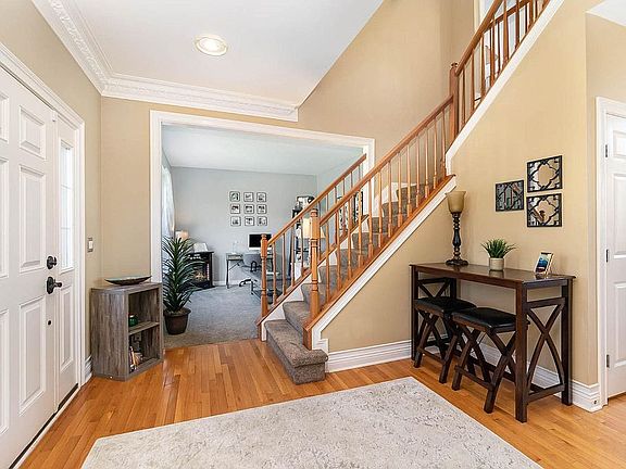Come fall in love with this beautiful home situated on the fairway of hole 2 at Legendary Golf Course. Relax on the Trex deck or paver patio by the fire. The open concept kitchen with granite counter tops and SS appliances is connected to a 2 story Great room with coffered ceilings. Finished basement has a wet bar/kitchenette and flex room that provides a whole other living space! Two staircases lead to 4 BR's + a loft/bonus space. What will you do with this space? Plus many wonderful amenities!