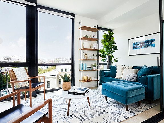 - Exterior features: Bicycle storage, Conference Room, Custom mirror vanity systems, Electric Vehicle Charging Stations available, Flooring: Wood, Game Room, Green roof with solar panels, LEED Gold Certified, Nest smart thermostats, Nine-foot ceilings, Penthouse-level communal kitchen, Pet Park, Pet Washing Station, Quartz countertops, Stainless steel appliances and brass details, Sustainable goods delivery, Under-cabinet lighting, Whole Foods Market on ground floor
