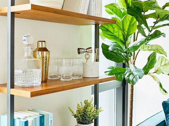 Modern tileworkLaminate wood flooringFloor-to-ceiling windowsFull-size washers and dryersPrivate balconies or terracesSoft-close cabinetryQuartz countertops