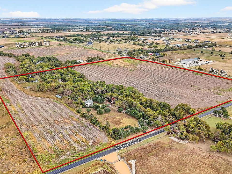 Located at the northwest corner of Kerfoot Road and Pike Road, this remarkable 40± acre property offers an ideal location, easy access, and significant growth potential. With paved road frontage on two sides, it ensures flexible entry and exit points along with excellent visibility for future projects. Nearby utilities make it versatile for a range of uses, including residential neighborhoods, commercial ventures, or mixed-use developments, pending necessary approvals. The open land provides plenty of room for planning and future improvements as the area continues to grow. It's a great opportunity for developers and investors looking for acreage in the thriving North Texas corridor.