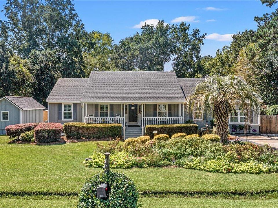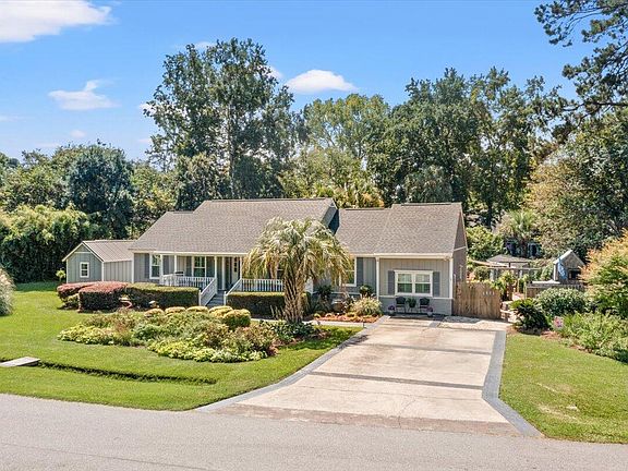 Don't miss this rare opportunity to own a property of this magnitude! Experience the true meaning of expansive luxury, inside and out. Located on a cul-de-sac, this almost half acre lot is located in the Bayfield Manor subdivision, a part of Harbor Woods, on James Island. No HOA! Upon entering the cute covered porch, you're welcomed into the foyer, overlooking the spacious open concept dining room, family room, breakfast nook, and gourmet kitchen. Completely renovated in 2018, this home boasts hardwood floors, plantation shutters, fireplace, and crown molding. A gorgeous stylish kitchen features a 9 ft. island, maximizing 360-degree storage space and provides a seamless high-end feel. It is topped with pristine quartz countertops, offering beauty and exceptional durability for prep and entertaining. There's a large farm sink, Bosch dishwasher, double pantry, coffee bar and floating shelves. A large guest bedroom is steps away, featuring gorgeous handmade Mexican Saltillo tiles. Two additional guest bedrooms are spacious and the sleek guest bathroom provides plenty of space for family or guests.The expansive primary suite, a true sanctuary, boasts a large walk-in custom closet and sitting area. The ensuite bathroom has quartz countertops, double vanity, dressing table, linen closet, and extra large walk-in shower. French doors lead out to an elevated deck where you'll discover the storybook charm of your own private resort! Manicured grounds and a water garden (with gold fish) offer tranquil and visually captivating focal points. Expertly designed lighting illuminates this oasis highlighting colorful flower beds. This yard creates an informal inviting atmosphere. There's even a garden shed/playhouse, a custom outdoor hearth for your pizza, smores, or burgers - perfect for year round entertaining - creating unforgettable culinary experiences under the stars. You'll be pleased with the 11.5' x 24' garage/barn with two lofts for extra storage, a 8' x 26' utility shed and a beautiful 10' x 20' vaulted climate controlled studio with endless possibilities. The attic has a walk-in cedar closet. This home had a new roof and windows installed in 2023 and has aluminum hurricane shutters, easy to install! Great location. . 6 miles to historic downtown Charleston, 5.6 miles to Folly Beach. This immaculate home offers the perfect blend of modern luxury and contemporary sophistication. Move in ready!
