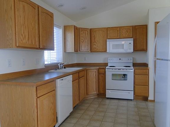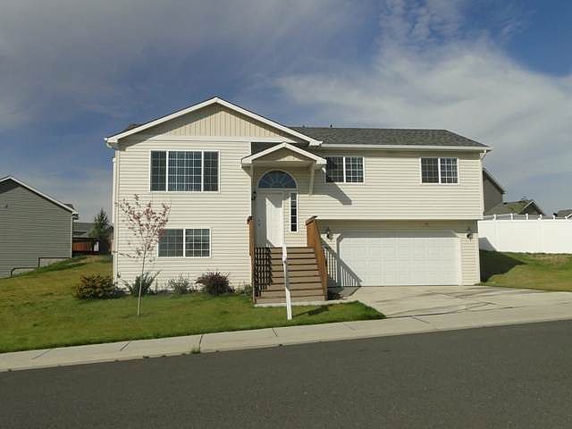 Clean & cared-for, this newer home is ready for you! Upstairs features a sleek fireplace & cathedral ceilings. Large window in the formal living room & open to the dining room. Dining opens to the kitchen & exits to the raised deck. Natural wood cabinets in the kitchen, which features a pantry. 3 bds upstairs, including master with full bath. 2 egress bds downstairs & bath. Clean 2-car garage & sprinkler system, too! Lots to appreciate about this contemporary home!