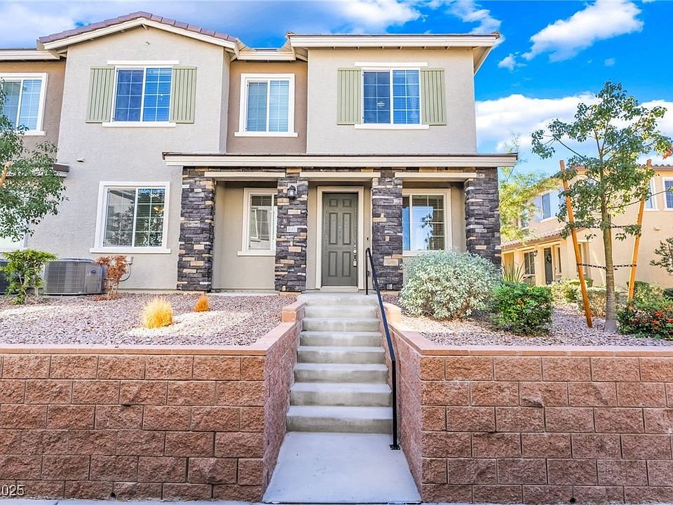 Move-in ready modern townhome (end unit) in a gated community near Nevada State University, College of Southern Nevada and within 30 min from Lake Mead. This spacious 3-bedroom, 3-bath home features a flexible floor plan with a convenient downstairs bedroom and full bath—perfect for guests or multigenerational living. The open-concept kitchen showcases quartz countertops, stainless steel appliances, dark modern cabinetry, recessed lighting, and a large island with a breakfast bar. Upstairs, the primary suite offers a walk-in closet, dual sinks, a walk-in shower, and a relaxing soaking tub, plus a versatile loft for work or leisure. Enjoy community amenities including a pool, spa, playground, BBQ area, park, and guest parking. With a 2-car garage and easy access to schools, shopping, and the freeway, this stylish home combines comfort, functionality, and location all in one!