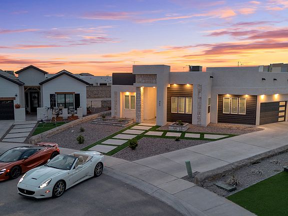 This one of a kind custom home by Savannah Homes, built in 2025, showcases exceptional design and attention to detail. Sitting on a premium 12,197 sq. ft. lot with no back neighbors, the property features a thoughtfully designed side-entry garage that enhances the home's curb appeal and clean front view with front landscaping. Inside, you'll find tall ceilings throughout, elegant ceiling beams, and a gourmet kitchen made for both everyday living and entertaining. The master suite includes his and hers closets, a luxurious soaking tub, a walk-in shower, and a dedicated vanity area. Additional highlights include epoxy garage floors with built-in shelving and high-end finishes throughout. Offered fully furnished and move-in ready at full asking price, this is truly a one-of-a-kind home in El Paso, Texas. *Cars not included*