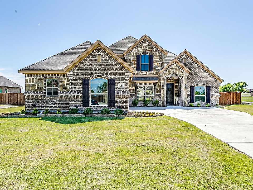 Gorgeous Custom Home on Half Acre in Prairie Timber Estates! Features: 4 Bedrooms, 3 Full Baths, Study, Living with Stone to Ceiling Gas Log Fireplace, Formal Dining, Island Kitchen, Breakfast Room, Upstairs Game Room, Covered Patio with Outdoor Kitchen & More! Tons of Upgrades & Extras: Wood Floors, Custom Ceiling Features, Crown Molding, Custom Cabinets, Lighting, Fixtures - This One Has It All! Large Island Kitchen with Quartz Counters, Stone Back Splash, Pot Filler, Farm Sink, Large Pantry, & Desk Area. Master Suite with Wood Herringbone Tile Flooring, Free Standing Soaking Bathtub, Huge Walk In Rain Shower, Dual Sinks, Quartz Counters & Walk In Closet. Outdoor Kitchen with Sink, Built In Grill. Must See!