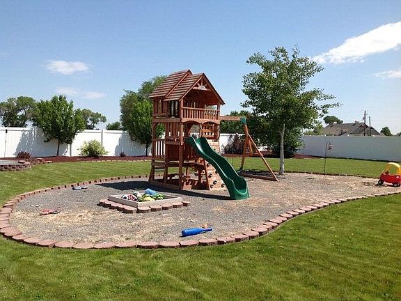 THIS HOME HAS BEEN GREATLY REDUCED FOR QUICK SALE !!! This beautiful home is energy efficient and has been well maintained. This homes has 5 bedrooms and 3 baths with over 3000 square feet and sits on more than half an acre. Enjoy many upgrades in this home including central air conditioning, ceiling fans, hand-scraped solid hardwood flooring, knotty alder kitchen cabinets, tile floors, vaulted ceilings with hidden track lighting on planter shelves, master bedroom patio door to back patio, walk-in closets, his and her walk-in closets in the master, jetted tub, surround sound, fully networked, central vacuum, dual vanities in two of the bathrooms, natural gas stub and flue pipe are already installed for a basement gas stove. Outside features include a fully fenced yard with vinyl fencing, RV pad, huge playground set, back patio and also a separate fire pit area next to a rock landscaped fountain area. The yard has a full sprinkler system. Home is very close to the Snake River and the greenbelt and boasts a tremendous view of Eagles and other birds of prey as they hunt on the Snake River. Owner has already purchased an American Home Shield Warranty for the Buyer!!!!