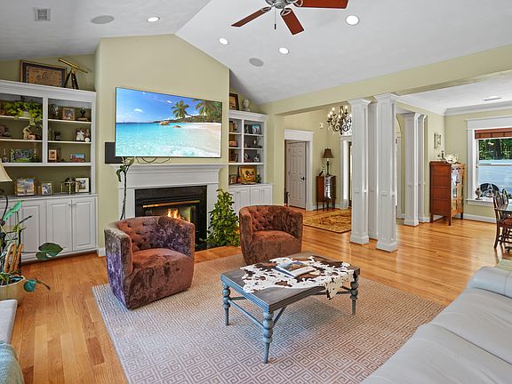 Perfectly positioned on the Roanoke Cty line, this home offers peaceful living in Franklin Cty and only 9 miles from Roanoke Memorial Hospital and 12 minutes from Downtown. Stunning contemporary ranch w/beautiful valley views, 5.53 acres & main level living. The floor plan is meticulously designed for entertaining while being functional for everyday life w/approx 4,029 sq. ft finished & approx. 1,024 unfinished sq. ft, 5 bedrooms & 3.1 baths. Great room w/cathedral ceiling, gas fireplace & wood floors. Huge gourmet kitchen w/two islands, gas cooktop, breakfast dining area & formal dining room. Primary bedroom suite w/large walk-in closet. Lower level offers a spacious family room w/tall ceilings & wood burning fireplace. Crown molding throughout, deck w/composite decking & screened porch. The house has a 3 bedroom septic system and house is decorated as 5 bedrooms. Crown molding throughout, deck w/composite decking and screened porch. Current owners finished the basement. Approx 1,024 sq. ft of storage space & a 2 car garage. Very convenient to Roanoke & the lake. Located on the Roanoke County line but pay the lower Franklin County taxes.