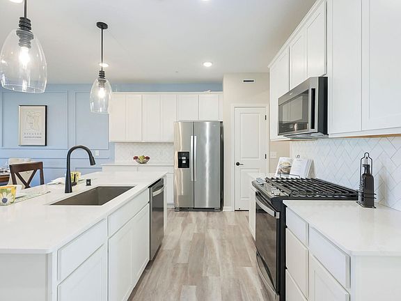 Welcome to your like-new townhome in the heart of Lake Elmo! This stunning 3-bedroom, 3-bathroom residence offers a perfect blend of modern style and comfortable living. Built just three years ago, the home feels and looks brand new. The spacious and open floor plan is designed for both relaxation and entertainment. The main level features a sunroom that's perfect for enjoying your morning coffee, while the patio is ideal for grilling and outdoor gatherings. The kitchen is a chef's dream with an extra-large center island that offers ample counter space and seating, a 6-burner gas range w/ griddle and complemented by a large pantry for all your storage needs. This home is filled with high-quality upgrades that set it apart. Elegant ceiling fans add a touch of