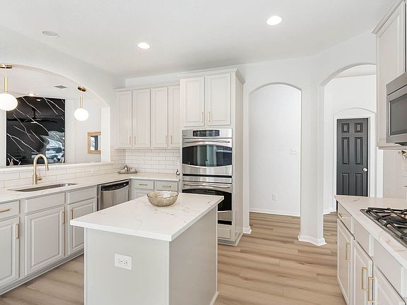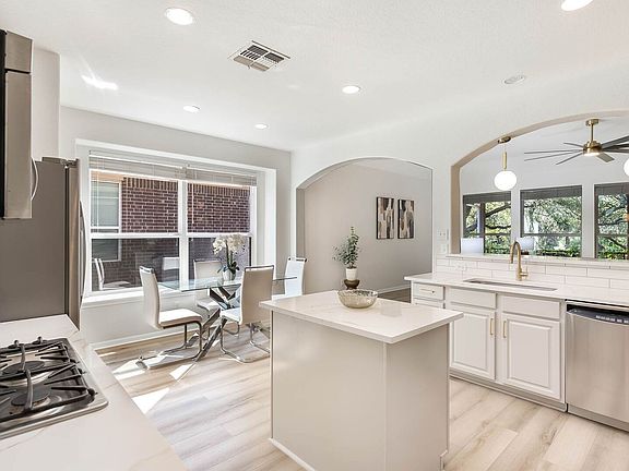 Impeccably designed and move-in ready, this elegant one-story home offers a perfect balance of sophistication and comfort within a private, gated community. Featuring an open-concept layout, this 4-bedroom, 2.5-bath residence showcases beautiful modern finishes, abundant natural light, and seamless flow between living spaces. The gourmet kitchen is the centerpiece of the home boasting sleek quartz countertops, custom cabinetry with gold hardware, stainless steel appliances, a gas cooktop, and double ovens. The kitchen opens effortlessly to the spacious living area, ideal for both entertaining and relaxing. The primary suite is a tranquil retreat with a spa-inspired bath, dual vanities, and generous closet space. Three additional bedrooms provide flexibility for guests, family, or a home office. Enjoy serene greenbelt views from the covered patio perfect for outdoor dining and peaceful evenings surrounded by mature trees. Located in a small, well-maintained gated neighborhood, this home offers privacy and convenience just minutes from Loop 1604, Highway 151, top-rated schools, major employers, and premier shopping and dining destinations.